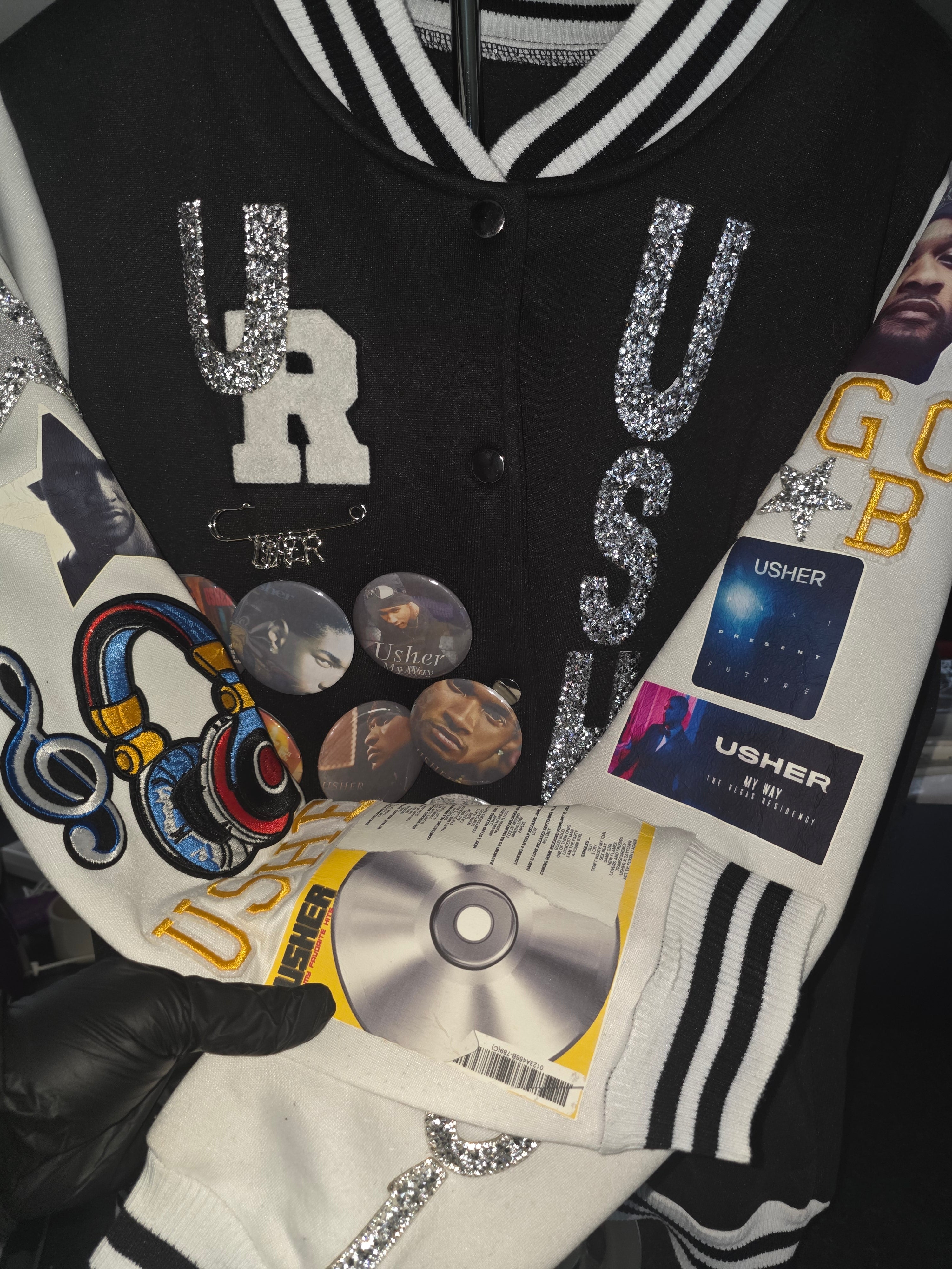 This #1 Fan Varsity jacket is a masterclass in mixed-media customization, blending modern techniques with a classic collegiate aesthetic. By layering diverse textures, the design achieves a high-end, "collectorās item" feel that standard store-bought jackets can't replicate. Unique keepsakes concert Letterman Jacket!